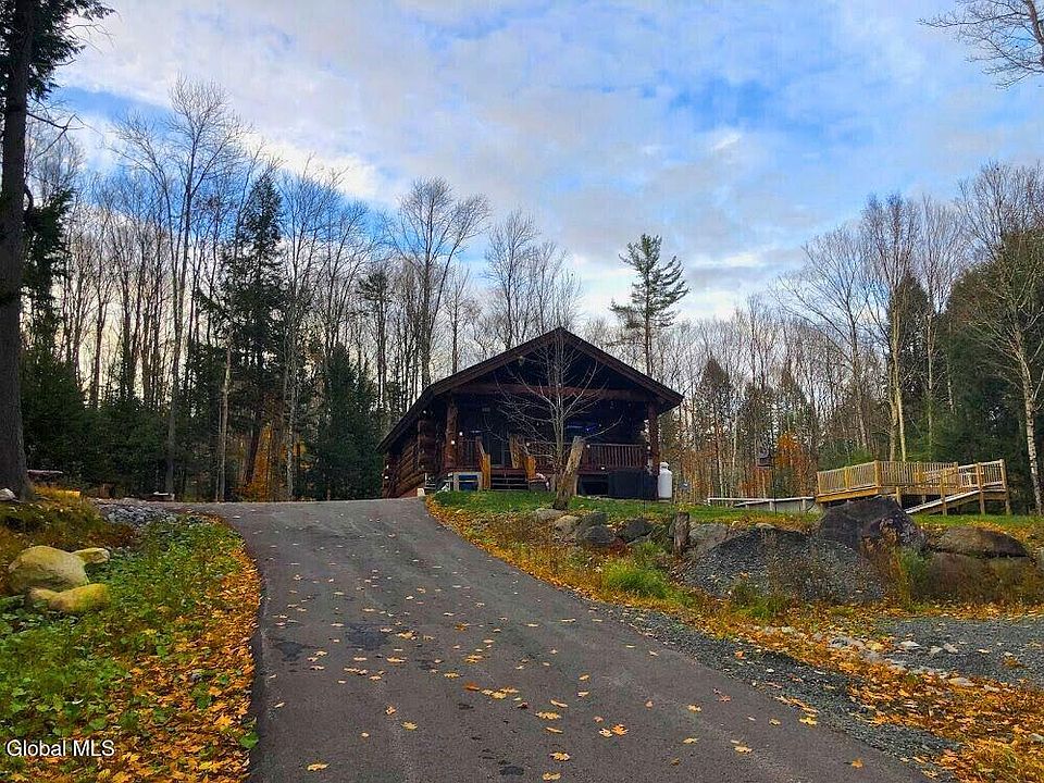 Welcome to this Adirondack retreat. Built in 2009, this custom log cabin is a true gem, offering peace, privacy, and seclusion. Crafted with massive pine logs and designed with an open floor plan, the home combines authentic Adirondack charm with modern convenience. The interior features a great room with vaulted ceilings, exposed beams, woodstove and hardwood floors, creating a warm and inviting space. The main level offers two bedrooms and a full bath. Outside, the property has been thoughtfully improved with a new 26x30 garage, storage shed, wood shed, and above-ground pool with deck for summer enjoyment. The landscaped lawn includes an outdoor fireplace, perfect for evenings under the stars—star gazing here is truly spectacular. A freshly paved driveway leads to the homesite, which is set well back from the road for total privacy. All of this is located just minutes from Great Sacandaga Lake, Caroga Lake, snowmobile and hiking trails, and other year-round outdoor activities. This property includes two parcels (56.-1-42- 18.50 acres & 56.-1-19 - 33.50) Could be sold separately. Do not miss this opportunity.