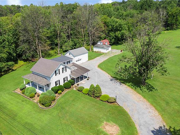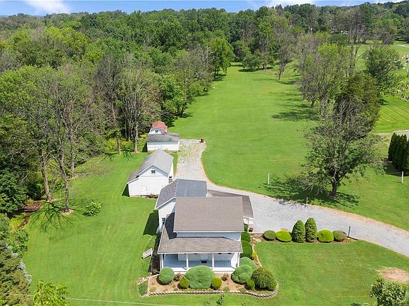 This Nazareth farmhouse is conveniently located offering 3 bedroom 1.5 bath situated in Bushkill township on a private tree lined 5.7 acre lot, a babbling brook and just a few hundred yards from Jacobsburg park. It would be great for horses, farm animals or plenty of room for crops. Enjoy the outdoors with the covered front porch, large rear covered patio. Inside you will find a great kitchen with a separate eating area, living rm, den, first floor laundry. The second floor offers a nice size master bedroom plus two other bedrooms and a full bath. There is a 2 car detached garage with a second floor work area plus an additional 1 car garage with additional storage. This home has been in the same family for over 80 years!