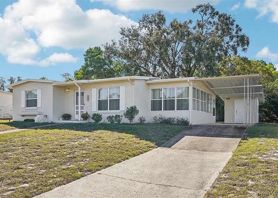This charming move-in–ready home sits on a spacious .20-acre lot in an established, centrally located neighborhood close to shopping, restaurants, medical facilities, and schools. With 740 sq. ft. of living area and 1,634 sq. ft. under roof, this 2-bedroom, 2-bath residence offers thoughtful updates and surprising space both inside and out. You’ll love the updated kitchen with solid wood cabinets, a generous dining room, and the large enclosed sunroom with air conditioning, perfect for year-round enjoyment. Built-in cabinetry in the sunroom provides convenient storage, and the home also features an interior laundry room plus two outdoor storage sheds. This home sits high and dry on a hill with no flooding issues and includes updated windows for peace of mind. The exterior was recently painted, giving the property a fresh and well-cared-for appearance. The well is available for irrigation only (not warranted), and the home is on public water and sewer. Whether you’re a first-time homebuyer, investor, or seasonal resident, this is an excellent opportunity to own for less than the cost of rent!