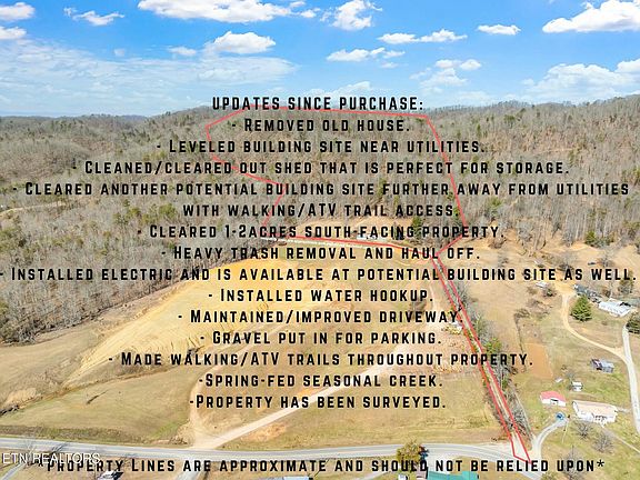 Recent improvements have enhanced the property's accessibility and usability, making it ready for your vision. The old home has been removed, and a build site near utilities has been leveled, providing a solid foundation for new construction or RV hookup. An additional cleared building site further from utilities is accessible via walking and ATV trails, which weave throughout the property. The driveway has been improved and maintained, and gravel has been added for parking, ensuring easy access.