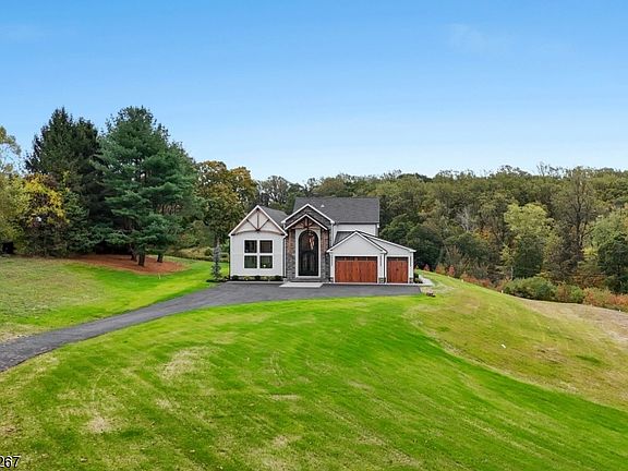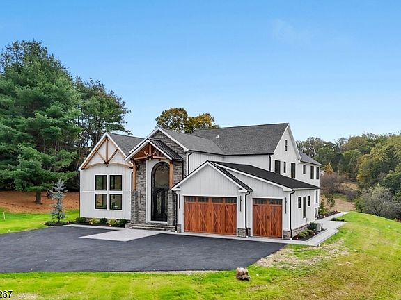 Welcome to Cherry Lane, Mendham's most prestigious address, where this brand-new custom estate crowns 5.94 private acres with breathtaking, unobstructed views. Blending Colorado's rustic grandeur with NYC's sleek modern style, this dream home offers roughly 7,500 square feet of finished living space with 6 bedrooms and 5.1 bathrooms. Soaring ceilings, expansive windows, and an airy, open flow create the ultimate setting for both everyday living and grand entertaining. The dramatic great room stuns with 24-foot beamed ceilings and a striking fireplace, while the main level impresses with 12-foot ceilings, custom millwork, and seamless transitions throughout. A chef's kitchen showcases real-wood cabinetry with soft-close details, quartz countertops, Wolf appliances, and two oversized islands anchoring the dining and living areas. Hardwood oak floors span the first and second levels, accented by mosaic tile in the foyer and lower level. The primary suite is a private sanctuary with dual walk-in closets, dual vanities, a spa-like jet shower, and a soaking tub framed by natural light. Additional highlights include a private in-law suite with built-ins, radiant heated floors, a finished lower level with 10-foot ceilings and glass enclosed wine room. With three-zone HVAC and finishes curated from luxury suppliers, this one-of-a-kind true statement masterpiece delivers bold design, panoramic views, and the ultimate modern lifestyle in Mendham's most prestigious setting.