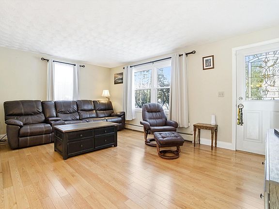 Set on 3.2 private acres surrounded by mature woods, this south facing ranch offers a peaceful setting with a thoughtful blend of indoor comfort and outdoor living. The property features a spacious multi-level deck overlooking the backyard, ideal for entertaining, relaxing, or enjoying the natural surroundings. A nearby hot tub area and fire pit space enhance the outdoor experience, while an oversized shed provides excellent storage or workshop potential. Inside, the main level is filled with natural light and showcases hardwood flooring throughout. The inviting living room offers a warm, comfortable gathering space, while the eat-in kitchen features ample cabinetry and direct access to the rear deck, perfect for seamless indoor-outdoor living. Three well-proportioned bedrooms and a full bath complete the main level. The finished lower level significantly expands the living space with a large family room highlighted by oversized windows and a brick hearth with a wood stove, creating a cozy retreat during cooler months. This level also offers additional finished space suitable for a home office, guest area, or hobby room, along with generous storage. Tucked away in a serene setting yet conveniently located just minutes from I-93, I-89, Concord Hospital, and downtown Concord, this home offers the rare combination of privacy, usable acreage, and accessibility, an ideal opportunity for those seeking both tranquility and convenience. Showings start at open house 12/20 10am Noon.