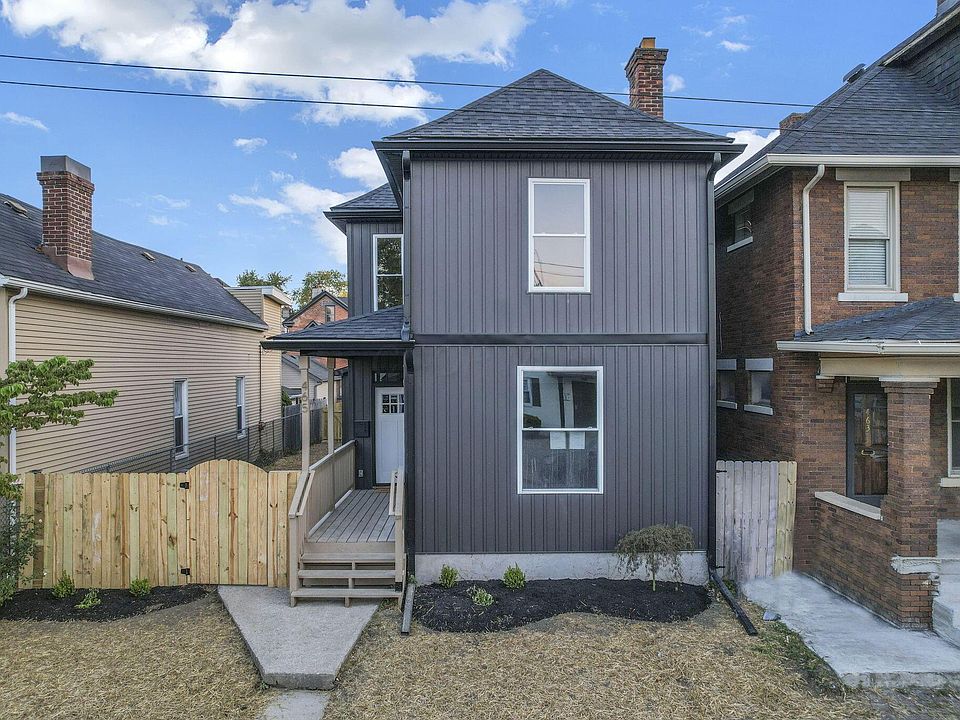 This STUNNING home in Schumacher Place/German Village has been essentially REBUILT (FULLY PERMITTED) FROM THE GROUND UP, offering the charm of the neighborhood with the peace of mind of modern living. Nearly everything is NEW, inside and out. The exterior boasts NEW vinyl board and batten siding, NEW soffits, NEW black gutters, NEW stone veneer, NEW windows and doors, a NEW front porch with overhang, NEW handrails, fresh landscaping, privacy fencing, NEW concrete walks and steps, plus a COMPLETELY NEW garage with NEW block, framing, electric, door, and opener.