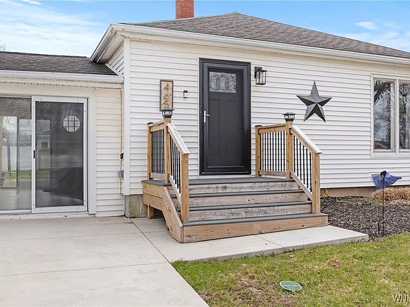 Welcome to this stunning, top-to-bottom renovated ranch in the heart of Tonawanda! This home offers modern living with an incredible list of upgrades and it's truly move-in ready. The spacious, recently painted living room flows seamlessly into a fully remodeled kitchen featuring custom-built, soft-close cabinets, high-end appliances, and a sensor-type faucet, perfect for the modern homeowner. The elegant formal dining room is ideal for family gatherings. The home boasts three good size bedrooms and a beautifully updated bathroom with subway tile and a sleek modern vanity. The finished basement is a cozy retreat, compete with a centered, modern electric fireplace and an entertainment area that is perfect for hosting or relaxing. Step outside to the recently fenced backyard, offering both privacy and a fantastic space for entertainment. Enjoy the evenings on the patio under the brand new gazebo. Additional improvements include a new, upgraded electrical service, HE furnace and A/C, new washer and dryer, a new garage door, storm doors, and several new windows. Over $80,000 in improvements have been made within the last year - full list of updates available in the attachments. Showings to begin on Friday 4/11.