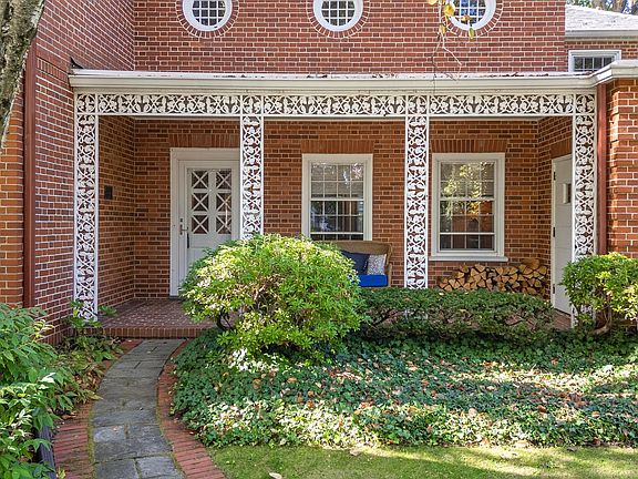 Enchanting and unforgettable! Fall in love with this masterfully designed College Heights Historic residence, crafted by architect Walter Eschenbach in 1939. Perfectly positioned on a corner lot surrounded by majestic trees and lush landscaping, this brick two-story home serves as your private sanctuary. Upon entering you are welcomed by a beautiful crafted kitchen featuring a stunning 14-foot granite island, stainless steel appliances and rich walnut hardwood flooring. The living room, complete with a cozy wood-burning fireplace and a wall of windows, exudes a warm and inviting atmosphere while seamlessly flowing into the formal dining room. Just off the kitchen, the sunroom provides an additional retreat offering access to a serene private patio. A mudroom and half bath complete the main level. The upper level includes a primary en suite with an updated bath and walk-in closet, plus two additional en suite bedrooms. The finished lower level offers a spacious family room with built-in shelving and distinctive window wells, along with a half bath and laundry room. The home also features a one-car attached garage and an additional two-car detached garage, perfect for extra storage, bikes, and more. Situated just blocks from the vibrant campus and downtown venues, this home combines historic charm with modern updates.