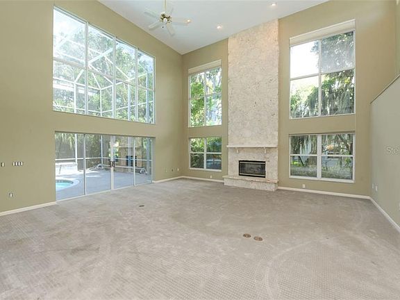 The Crown Jewel on Bowlees Creek with direct boating access to Sarasota Bay! This modern volumetric home has the layout and space today's luxury buyers want. All primary rooms are oriented onto a massive 2-story caged pool area that overlooks picturesque Bowlees Creek. The 23' x 23' Great Room features a 20 high ceiling and expansive windows and sliders for an abundance of natural lighting. The room is accentuated with a stunning floor-to-ceiling natural coral stone fireplace. The kitchen includes a cooking island with a natural gas jenn-aire cooktop and a designated eating area. A separate wing on the first floor includes two bedrooms and a shared bathroom. Upstairs the massive 18' x 24' Master Suite features a large walk-in closet, dual vanity sinks, a soaking tub and separate shower. Off the master is a private 32' long loggia with a spiral staircase that leads to the pool. The circular paver block driveway leads to an over-sized garage which includes extra space for a golf cart or extra storage. The large back yard is ideal for pets or play area. Roof replaced in 2017 and one A/C replaced in 2019. Seller is offering a home warranty up to $550 compensate for older appliances and 2 older A/C systems. The home is connected to natural gas and flood insurance is only $750/year. Located midway between Bradenton and Sarasota and one block from historic Sara Bay Country Club.
