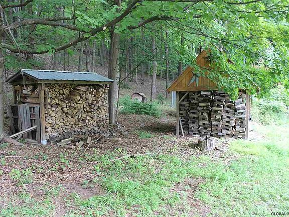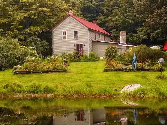 What a property! The main house has 4 bed rooms+2 other rooms, wide plank flooring upstairs (may be on the first floor under carpet and linoleum), a fireplace with heatilator in the living room and lots of original detailing. Plus the attic has foam insulation on the ceiling. There is a newer barn, and older carriage house, a maple sugaring house (huge amount of maple trees behind) and a game house with bar, 3/4 bath, booths and wood floors. All the properties have newer metal roofs (house has a standing seam metal roof). There is a small pond and beautiful gardens. All this on a quiet country road with property on both sides (17 acres with carriage house and 30 acres with the house). The house has two different heating systems. It can be heated with oil or coal or wood. Good Condition