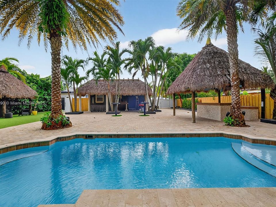 Sophisticated and renovated three bedroom, one and one-half bath retreat in Miami Gardens. Experience resort-style living with a billiard pool, cabana atmosphere and a rejuvenating jacuzzi. Entertain effortlessly with a pool, barbecue area and extensive parking for 8 cars. The property offers complete privacy with a fenced yard and comes unfurnished for your convenience. This home epitomizes luxury living in a prime location. Seize the opportunity to own a haven of style and relaxation. Pets allowed. It could be rented for a short term. Just move in! Copyright Miami Association of Realtors Regional MLS. All rights reserved. Information is deemed reliable but not guaranteed.