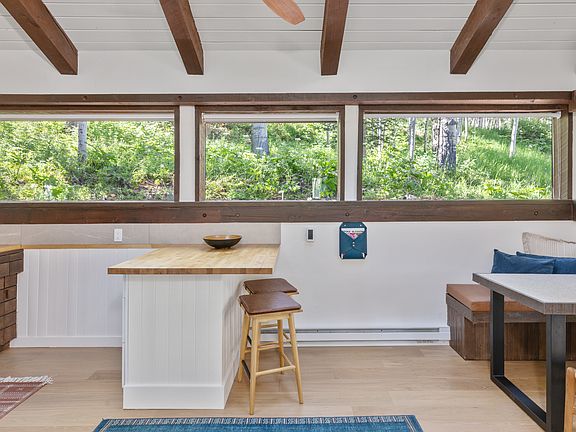 All utilities, inclusive of Internet, gas, water, power and trash and driveway snow removal are included in the rate. The home is professionally designed & fully furnished with modern finishes, this peaceful getaway features a cozy gas fireplace, dining table, coat closet and well-equipped kitchen. Enjoy a walk in new modern shower, a stackable washer/dryer within the home, and living room with large sectional Tempurpedic pull-out sofa bed. The living room has beautiful views of the surrounding forest (mountains in the winter) and a flat screen smart Frame TV with streaming services and sound bar. Wrap around deck with sliding glass door Adirondack chairs and landscaping .