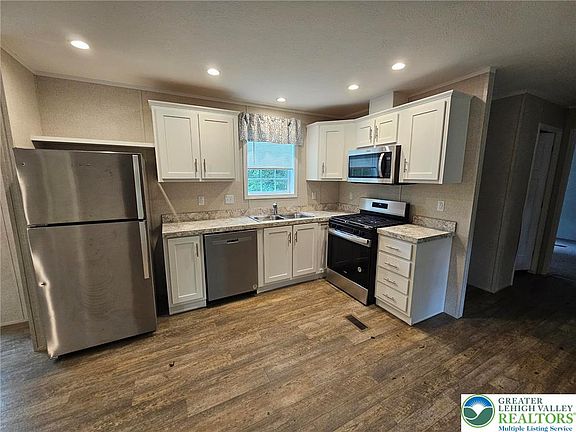 Welcome to this brand-new manufactured home in Royal Manor Village, a peaceful and private residential community of 8 home sites, just 10 minutes from both Bethlehem and Easton, and only 5 minutes from I-78. Set against a backdrop of beautiful long-distance views, this home offers a quiet rural feel with easy access to major routes, shopping, and dining. Nature lovers will enjoy being close to outdoor attractions like the Delaware River and Canal, Fry’s Run Park, and Mariton Wildlife Sanctuary. Featuring Two Bedrooms / Two Baths and 693 sq.ft of thoughtfully designed living space, this move-in ready home combines comfort, efficiency, and modern convenience. The community has been fully updated with a newly paved private road and, offering low-maintenance, living in a scenic setting. Water, sewer, roadway snowplowing, and common area grass cutting is included. Whether you are a first-time buyer, looking to downsize, or simply seeking a peaceful place to call home, this is a great opportunity to enjoy a fresh start in a beautifully finished new home. Lot lease is $500/month and includes, road maintenance, common area lawn maintenance, water and sewer.