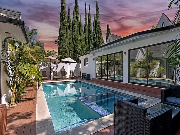 This property is available for short-term and long-term rentals, each with its respective pricing options. It is fully furnished, decorated, and equipped with hotel-like essentials and amenities. With our concierge team available to assist 24/7, this home rental offers a five-star hospitality experience, whether you are staying for a few days, a month, or a year. Step into the lap of luxury at this stunning entertainer's dream home, perfectly situated in the heart of Los Angeles. This designer-finished property offers both style and function with an airy open floor plan, sophisticated touches, and a peaceful, private ambianceall just moments from 3rd Street, The Grove, and LA's finest restaurants and shopping. The main house features 4 spacious bedrooms and 3 sleek bathrooms. Soaked in natural light, the living room boasts a modern fireplaceperfect for cozy evenings. The gourmet kitchen is a chef's paradise with custom cabinetry, a generous island, and top-of-the-line appliances, ideal for both cooking and entertaining. Retreat to the master suite, where you'll wake up to views of the pool and enjoy direct access to the lush backyard. The master bath is pure indulgence with a steam shower, soaking tub, and double vanities. Adding to the appeal, a separate guest house provides 1 bedroom, 1 bathroom, and a fully equipped kitchen perfect for extra privacy or extended stays. Outside, escape the city in a serene backyard oasis surrounded by lush landscaping. Lounge by the pool, dine al fresco, or simply relax in total tranquility, it's hard to believe you're in the middle of LA. Whether you're here for work, play, or a little of both, this home has it all: luxury, convenience, and comfort in one unforgettable stay.