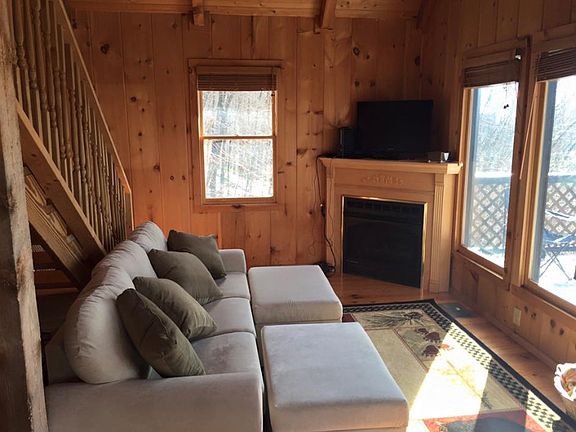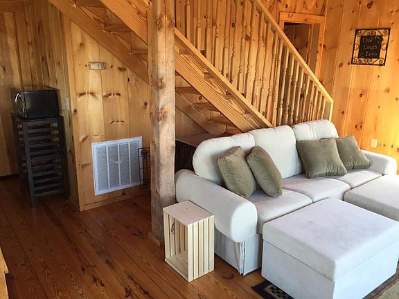 True private getaway! Over 10 acres of nature to relax and enjoy at any time throughout the year, if not the entire year. Year-round views of West Jefferson's and Boone's mountains. Rustic interior and exterior are a true cabin resort feeling with soaring ceilings, attention to every detail and clever storage throughout. Full kitchen with island overlooking generous sized eating area and living room with fireplace. One bedroom adjacent to living, the other in an upstairs loft. Deck wraps around the important half of the cabin with the views. Unfinished basement previously used to store ATVs, has laundry area and plenty of open storage. Attached carport plus ample open area for parking. Satisfying list of amenities this community has to offer including a recent helipad for emergencies! Location is a good halfway point between Boone and Wilkesboro, taking minutes to reach either for shopping, dining, and various activities.