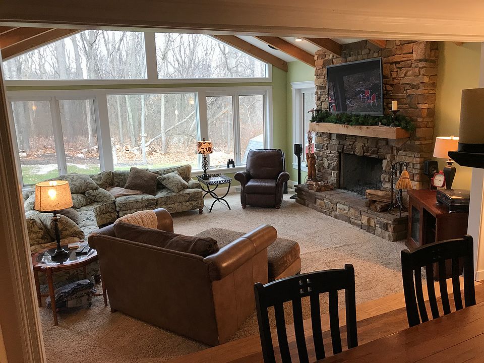For sale by owner, offering 3/2 to buyers agent. Colonial 4 bedroom 2-1/2 bath perched on the north side of Treeside Drive in the very desirable neighborhood of Wyoga Lake Estates in the Stow school district. Both Cuyahoga Valley Christian Acedemy and Walsh Jesiit high schools are walking distance. The house includes a very large custom eat in kitchen, the dining room has a fireplace, is is open to the step down great room, and its walls of panoramic windows and a second huge woodturning fireplace. The family room is a 2007 addition that was built with douglas fir post/beam construction & Pella custom wood windows, upon a 13 course foundation that has 3 very large windows makeing for a great expertise room, office area, or entertainment area. The very private back yard backs up to woods providing a beautiful parklike setting. A 400' composite deck was installed in 2016 and has patio doors into the kitchen, and the great room. Upstairs offers a very large master suite with lots of charm and detail to the spaces layout, and 3 bedrooms that share an extra large hall bathroom. The house has a large outbuilding shed, as well as an extra deep 2 car attached garage. The attack, windows, air conditioner, siding, front porch, back yard and landscaping are all recently replaced. Standard buyers agent arrangement honored.