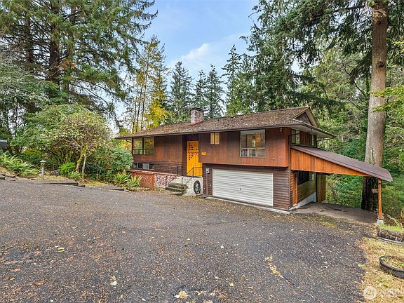 Tucked among the trees on Hoquiam Hill, this 4-bedroom, 3-bath split-level home blends mid-century charm with modern comfort. A wood entry with stone detail welcomes you with warmth and style. Radiant heat provides steady comfort year-round, complemented by a Reliance hybrid electric heat-pump water heater for energy efficiency. Two fireplaces create a cozy ambiance. Hickory, Pecan, and Cherry wood floors highlight the upper level, while Fir floors enhance the lower level. The kitchen features double ovens, abundant cabinetry, and a bright nook overlooking the trees. The partially finished basement adds 884± sq ft of space, ready to make your own. Enjoy the large deck and peaceful dead-end location just 25 minutes from the beach.