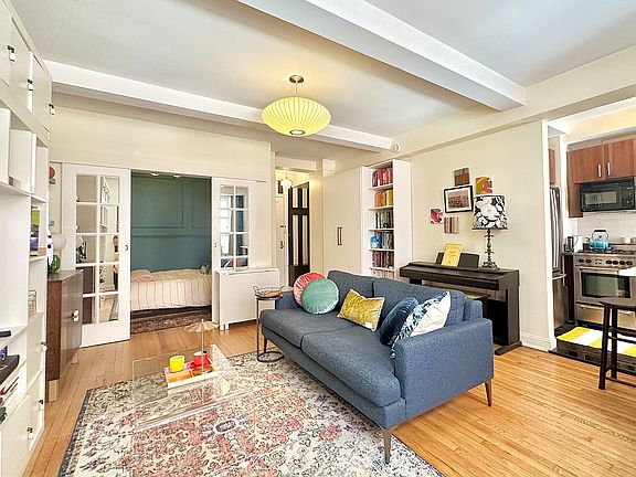 Alcove studioRestored prewar detailsPremium appliancesNatural lightNorthern exposuresBeamed ceilingsExtra-large walk-in closet