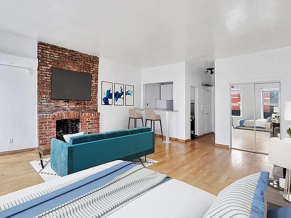 AWESOME ALCOVE STUDIO WITH FIREPLACE. You will fall in love with this apartment before you even open the door. Located on the 3rd floor of a small, well run building, this beautiful apartment has 3 large windows that enjoy a SUNNY SOUTHERN EXPOSURE. A separate kitchen has a great breakfast bar that opens to the large living room featuring a working electric fireplace. High ceilings, good storage, and a renovated bathroom. Temperature controlled HVAC system included. Located in Manhattan's exciting Midtown West this is a warm and inviting place to call home. The neighborhood boasts an eclectic array of International Markets, Boutique Shops, Dining Options, World class entertainment and Iconic attractions including Central Park, Lincoln Center and easy access to all Major Transportation options. HIP AND HAPPENING LOCATION. Laundry in building next door. 1 block from Clinton Community Garden.