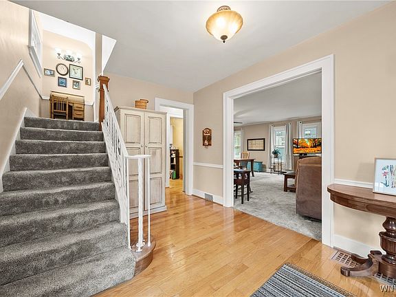 Exuding charm and character, this home welcomes you with a beautiful foyer and flows seamlessly into spacious living areas featuring both original detail and modern updates. Offering 3 generously sized bedrooms and 1.5 baths, the home includes a stunningly remodeled kitchen with soft-close cabinetry, granite countertops, and a center island—perfect for cooking and gathering. A formal dining room and den/family room provide flexible living options, while the expansive living room with wbfp and newer w/w carpeting. Gleaming hardwood floors found throughout showcases much of the home. The full bath has been completely updated with a stylish walk-in shower, and the convenience of second-floor laundry adds to the thoughtful design. A walk-up third-floor attic offers exceptional storage space. Comfort is ensured with new central air, and a heat pump that are 2 yrs old, and a furnace just 9 years old. Additional improvements include new windows throughout, blown-in insulation, updated front and rear steps, and all new gutters. A large rear deck is ideal for outdoor enjoyment. Plus, a huge open front porch to sit and relax. Completing the property is a brand-new shed, a 2-car garage and fresh landscaping providing both functionality and curb appeal. With its blend of timeless charm and modern updates, this home is move-in ready and designed for comfort and convenience.