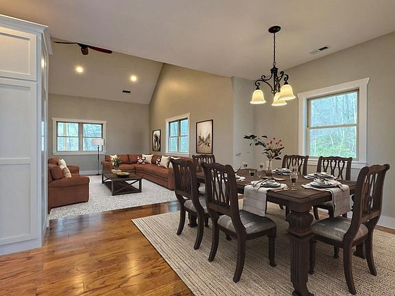 New construction that offers the perfect blend of style & comfort! Stunning 3-bedroom, 3-bath Craftsman-style home sited on 1.20 acres with a gentle slope to the rear of the property. An open design with hardwood flooring and plenty of natural light throughout the entire home. The main level offers a vaulted family room, a pristine kitchen with shaker-style cabinetry & quartz countertops, and a separate dining area, perfect for entertaining guests or relaxing with your family. Sought-after main-level Primary Suite with a large walk-in closet and a beautiful ensuite bath. The bathroom includes a custom tile & seamless glass shower, two sinks, and plenty of natural light. Additionally, the main level has a guest bedroom, full bath, spacious mudroom, and a covered rear porch. You'll find a spacious bedroom, full bath, and two attic storage areas upstairs. Future expansion in the basement, plumbed for a bath, making it an excellent space for secondary living with two double doors leading to a private patio or ideal for a workshop. The main level drive provides easy access to a beautiful timber-frame 2-car carport and the residence. Located in the Brasstown Trails community, this property offers access to Brasstown Creek via a community access area, with paved roads throughout. Located in Warne, NC, off Pinelog Road. Nearby attractions include John C Campbell Folk School & The Crown Restaurant, plus the restaurants & retailers of Blairsville, Hayesville, or Murphy! *Back on market - no fault of Seller*