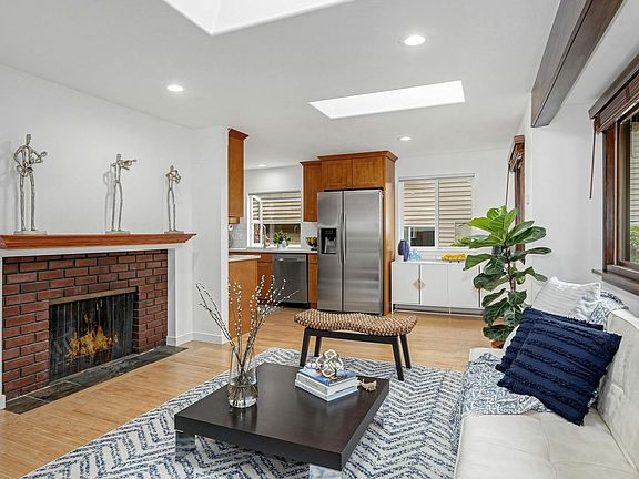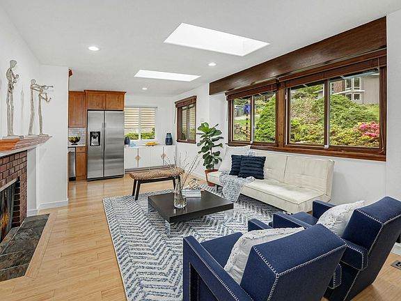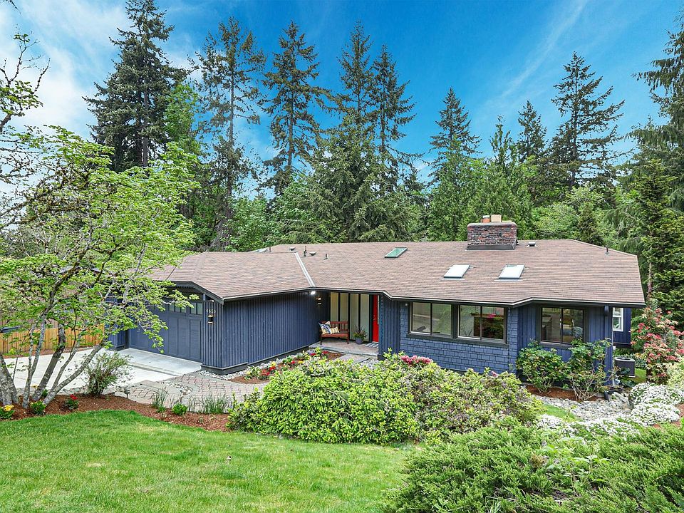 Available 10-22-25. Immaculate, updated home in Whispering Heights AC, EV charger and all landscaping incl. Backyard connects to impressive green belt with lush vegetation and no sign of neighbors. Main floor features updated kitchen w/ granite & SS appliances. Great room with vaulted ceilings, fireplace, lovely wall of windows and slider to rear upper deck. Primary bedroom with huge walk-in closet & 5-piece bathroom. Another bedroom and two bathrooms on this level. Two large decks in rear of home, skylights and natural light throughout. Lower level features huge bonus room w/ wet bar, fireplace, glass slider to lower deck; 3 BRs, 1 bath, and large storage space. Top-rated Bellevue schools. Prefer 18-mo lease. No pets pref.; 1 smaller pet c/c.