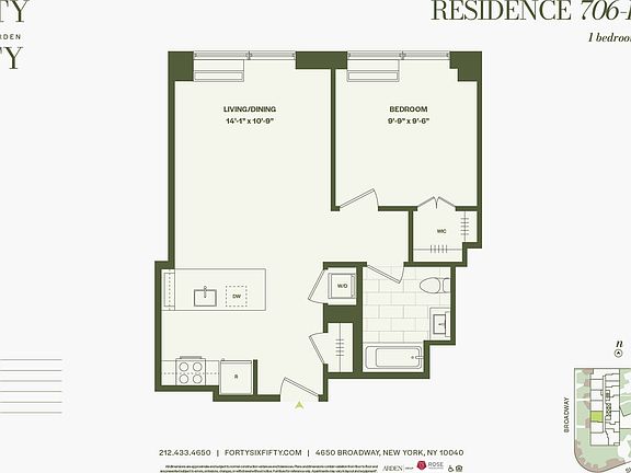 A world of wonder awaits at Forty Six Fifty; a stunning collection of brand new studio, one, and two bedroom homes in Inwood, overlooking Fort Tryon Park and The Cloisters at the northern tip of Manhattan. Striking architecture and sustainable design by Arden Group deliver a lifestyle that exceeds expectations, marrying the quiet elegance of Inwood with seamless access to the rest of the city.