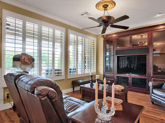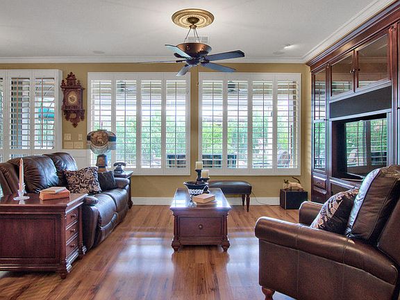Gorgeous ''Verbena'' model that is located in the active adult community of Trilogy at Power Ranch. You will notice all the upgrades the moment you enter the home engineered wood flooring, crown moldings thru out and shutters in every room.You will enjoy the kitchen with granite counters & breakfast bar, tile back splash, stainless steel appliances, gas range, under cabinet lighting, pendant lighting and Dining area. The open floor plan allows a wonderful area to relax or entertain. The Great Room features a custom built-in entertainment center, designer paint and wall of windows over looking the backyard.The Master bedroom has its own bath with marble counters, updated lighting, double sinks, large marble walk-in shower with seamless door and walk-in closet with built-in storage