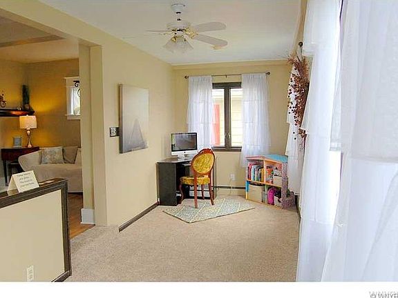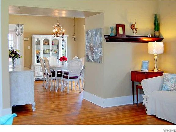 Unique property in the well desired Smallwood School district! Sunny bonus room 22x7(included in sqft)as you enter, perfect for media/office/hobbies, spacious living room with hardwood floors. Formal dining room with beautiful light fixture, 1/2 bath off the eat-in kitchen with ample storage. Large bedrooms and updated bath on 2nd floor. Attic with stair access has lots of potential! Deck off the kitchen overlooking the vast park-like yard. So close to the 290 & 90! This home is a charmer! Showings begin Friday, April 22 6pm. Open house Sunday, 4/24 1-3pm