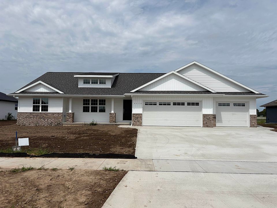 New construction 1,723sf ranch in the Village of Howard. This split-bdrm design home offers 3 beds & 2 full baths. Nicely covered front porch w/porch posts. Inviting foyer leads to the LR w/gas fireplace & dormer allowing more natural light. Kitchen features a large kitchen island, custom maple cabinets, walk-in pantry, & SS dishwasher & microwave. Dinette w/patio doors leading out to the backyard. Master bdrm features a nice walk-in closet, private full bath, & walk-in shower. Convenient 1st-floor laundry w/sink. Full bsmt w/egress, stubbed for future bath, & has access to the 3-stall attached garage. Exterior features vertical siding & brick per plan.