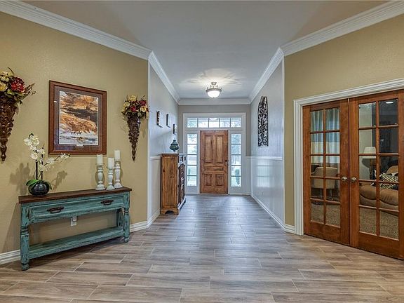 Fabulous custom 4 bedroom 3 bath home with office *Family room opens to spacious island kitchen wit new granite counters and overlooks sparkling pool with attached spa. In addition to the exquisite flowing and open floorplan, this charming home offers plenty of space and split bedrooms for added privacy with Jack and Jill feature *Peaceful wooded acre with large covered front and back porches *RV or boat parking with shop, storage building, fenced backyard,