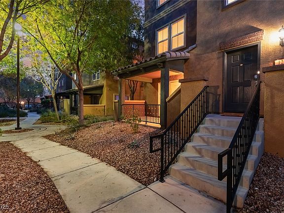 This exceptional turn-key corner unit stands out as one of the most energy-efficient residences on the market. Being a corner unit you will enjoy extra privacy and natural light throughout. The home features 4 bedrooms plus a den/office, 3.5 bathrooms, a 2 car garage and just over 2,000 square feet of interior space. The open-concept living and dining spaces create a perfect setting for entertaining guests or relaxing with family, seamlessly connecting to a gourmet kitchen equipped with stainless steel appliances. Quality is paramount in this home, featuring double soundproofed insulated walls between units to provide a serene living environment amidst the city. Residents enjoy a secure gated community loaded with amenities, including a sparkling pool/spa, gym, and parks for both children and dogs. Located in the heart of North Las Vegas, you have close proximity to shopping, dining, and entertainment.