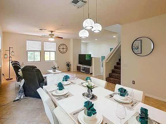 This stunning furnished tri-level modern home in the gated Centennial Valley North Las Vegas community offers a perfect blend of comfort and convenience. On the second floor, the spacious living room seamlessly flows into the kitchen, featuring a breakfast bar for additional counter space. Off the kitchen, there's a versatile room that can be used as a bedroom or office. The third floor is home to the bright, spacious bedrooms, with one offering a slider to a private patio. The primary bedroom includes its own en-suite bathroom with his-and-her sinks, a stand-alone shower, and a separate bathtub. Residents enjoy access to a beautiful community pool, a 24-hour gym, a park, and a children's play area. Ideally located near Crossroads Towne Centre, with dining, shopping, and essential services, this quiet neighborhood offers privacy and convenience, with malls just a short drive away. $200Move-in Admin Fee (non-refundable) $100 Key Fee (non-refundable) $300 Cleaning Deposit ( Refundable) $3220** Security Deposit (Refundable) - deposit is based on a scorecard basis & is determined by your credit, residential history, income, ect $45 / Monthly Resident Benefit Package Pets: (Per pet) - $350 - Pet Deposit (Refundable)**Deposit amount varies with owner** NO SMOKING ALLOWED Tenant required to maintain Liability Insurance throughout lease term.