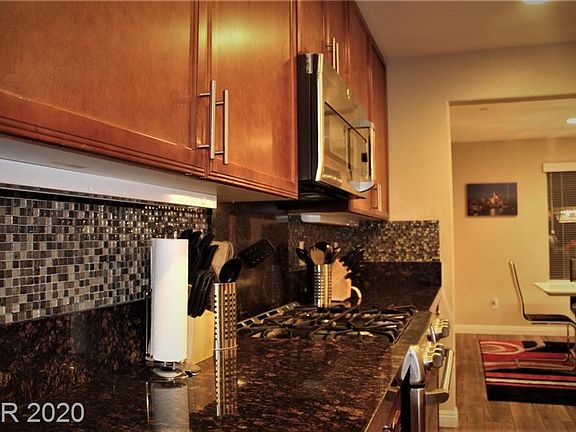 In a beautiful gated community this 3-story custom townhome w/ a rooftop deck 360 views of the strip and mountains great for sunrises & sunsets . Enjoy an open concept w/ granite kitchen island huge living areas w/ a lot of upgrades. GE appliances, water softener & purifying system. Each bedroom has its own private full bathroom. Large primary bedroom w/walk in custom shelves closet. Conveniently located mins away from I-215 , LVAC & a retail complex w/ a lot of shopping.