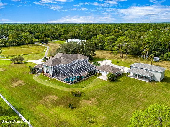 This exquisite estate is situated on 14.72 acres and features a 5,500+ sqft custom-built home, screened pool, detached 3-car garage, separate RV garage, two private lakes, and a fenced area for horses. At the center of the home is a beautifully designed kitchen, where style meets practicality. It features a gas cooktop, dual ovens, a cozy eat-in nook, and a custom pantry that adds both charm and convenience. The primary suite, located on the ground floor, offers a retreat-like atmosphere with its cozy fireplace, elegant crown molding, private sitting room, and a luxurious en-suite bath featuring a jetted tub, walk-in shower, and his-and-her closets. Upstairs, an entertainer's dream awaits in the expansive loft, complete with a full bar, walk-in wine cellar, and access to a screened balcony that overlooks the pool and sprawling grounds. This home is brimming with custom touches, including built-in cabinetry in the dining room, family room, wet bar, and loft. The soaring ceilings... ...in the living and family rooms create a grand sense of space, while recently updated laminate wood flooring adds a modern touch throughout. Exterior highlights include a trussed carport at the front entry, hurricane shutters for peace of mind, and a whole-home generator for added security. This estate is the perfect blend of luxury, functionality, and natural beauty, offering an unparalleled lifestyle of privacy, comfort and elegance.