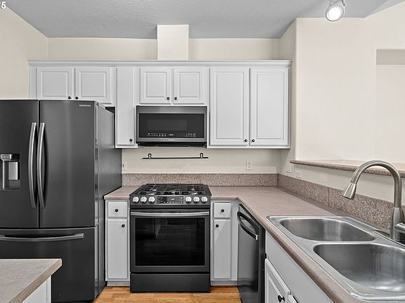 Welcome to this inviting townhome-style condo in the heart of West Linn, just moments from downtown Willamette’s shops, restaurants, coffee spots, and riverfront park. The open floor plan features vaulted ceilings, a gas fireplace, and built-ins in the dining area. Enjoy cooking and entertaining in the open kitchen with eating bar and high-end Tuscan stainless steel appliances. The primary suite offers a beautifully upgraded bathroom with a newer soaking tub. Both bedrooms include walk-in closets, and the freshly painted interior opens to a newly replaced balcony off the living room and primary bedroom—perfect for plants and plenty of natural light. Stay comfortable year-round with a mini-split system for heating and cooling. This home features an attached single car garage with a private driveway space, providing two designated parking areas. Directly behind the building you will find a lovely community koi pond featuring a waterfall, footbridge and benches for relaxing. You'll often find some ducks and an occasional heron enjoying the pond. Come and tour today!