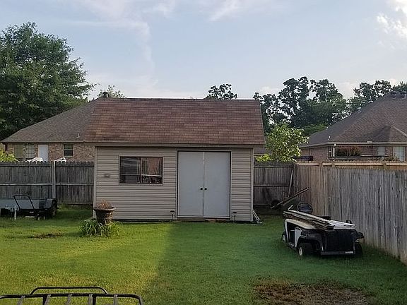 Price is home "As Is". 3Bdrm, 2bath, 2 car garage w/floored attic, brick with vinyl siding, electric a/c, gas heat and hot water, outside corner pie shaped lot, x-large flat backyard with 158sqft out-building w/attic, double gate backyard access, ceiling fans throughout, 12x14 rear patio, Bermuda grass yards.