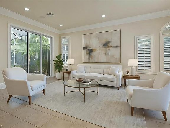 Exceptional Villa in Las Palmas at The Colony – A Private Oasis of Luxury Tucked away in the exclusive and romantic enclave of Las Palmas at The Colony, this charming villa offers the perfect blend of elegance, privacy, and resort-style living. Featuring three spacious bedrooms, each with ensuite bath, plus a convenient guest bathroom, this villa is thoughtfully designed with soaring 14-foot volume ceilings. Every detail speaks of quality and care—from the crown moldings and 12" baseboards to the classic tile flooring and wood plantation shutters. The gourmet kitchen is boasting a gas range, stainless steel appliances, custom banquette seating, and a breakfast bar—ideal for casual meals and entertaining. Step outside to your own private tropical oasis featuring a sparkling plunge pool—perfect for relaxing or hosting guests. This home has been meticulously maintained, with recent upgrades including a new roof, fresh interior and exterior paint, and a whole-house generator for peace of mind. A whole house generator, new roof installed in 2020. As a resident of The Colony, enjoy exclusive access to The Bay Club, offering both fine waterfront dining and relaxed sunset entertainment. The community also features world-class amenities such as a private beach park accessible by water taxi, tennis, pickleball, bocce, kayaking, canoeing, and sailing. All this, just minutes from upscale shopping, dining, and only 15 minutes to the airport. Don’t miss this rare opportunity to own a true gem in one of Southwest Florida’s most sought-after communities.