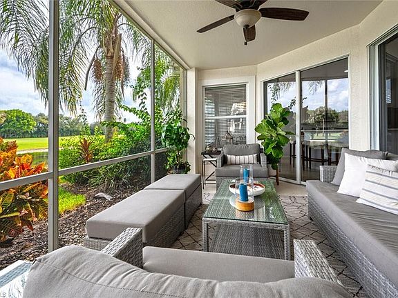Spacious open floor plan with a stunning lake view and the beautiful Arnold Palmer Signature Golf Course. IMMEDIATE GOLF PRIVILEGES IN NAPLES LAKES COUNTRY CLUB, a premier bundled community where you can own your own golf cart. The bright kitchen offers white cabinetry with newer refrigerator and dishwasher. Additionally, the washer and dryer are newer and the HVAC was installed in 2020! Also updated are the window blinds throughout the unit and the replaced bedroom carpets. The additional den provides space for an office and/or additional guest room. The Village of Lake Arrowhead boasts a pool and spa with seating and washrooms for its residents. The NLCC community provides tennis courts with a full-time Pro, a fitness center with a full-time director, bocce courts, and an aqua driving range with putting greens. Award winning dining with no minimum, recreation and fun-filled events are available to all residents at the NLCC Clubhouse and Arnies Cabana which is celebrating its first anniversary on October 24! Florida living at its best!