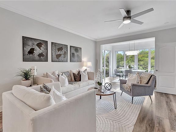 WINDSTAR-NAPLES "SALTLIFE" PREMIER COUNTRY CLUB COMMUNITY! PRIVATE BEACH CLUB-MARINA-BOATING, FISHING, GOLF, TENNIS, PICKLE-BALL & CLUBHOUSE. THIS "TURNKEY" FURNISHED STUNNING DECORATOR/DESIGNER TOTAL ($150,000+/-) REMODELED, 3 BEDROOM, 2 BATH, W/PRIVATE GARAGE AND GORGEOUS $1,000,000 SIREN FAIRWAY & PRESERVE VIEWS HAS IT ALL. Every feature and change has been carefully curated for luxury and sophistication. Enter into the home with a WIDE OPEN floor plan and BEAUTIFUL direct the unit ULTIMATE STUNNING GOLF COURSE, PRESERVE VIEWS. All the main floors throughout the home are custom "WOOD PLANK" tile flooring for "Ease Of Maintenance" and that luxury look. LOTS OF GLASS WINDOWS AND SLIDERS (ALL IMPACT HURRICANE RESISTANT FOR TOTAL STORM PROTECTION) KEEPS THE HOME LIGHT-BRIGHT & SUNNY ALL YEAR ROUND. All ceilings are 10" volume and finished with milled wood crown molding throughout. "CHEFS" kitchen, WITH DESIGNER WHITE WOOD "SHAKER" CABINETRY, LEVEL 5 QUARTZ TOPS, HIGH END STAINLESS STEEL APPLIANCES & A CUSTOM QUARTZ TOPS W/EAT-AT-BAR & WORK STATION FOR THOSE INTIMATE FAMILY KITCHEN GATHERINGS. Master Bedroom has 10' tray ceilings, HIS & HERS WALK-IN CLOSETS, BATHROOM HAS ALL MARBLE FLOORING, DUAL QUARTZ SINKS & VANITIES, FLOOR-TO-CEILING GLASS & MARBLE WALK-IN SHOWER. All other bedrooms have the same METICULOUS high end designer finishes throughout. GARAGE FLOOR, IS FINISHED WITH HARD EPOXY "RACE CAR" FINISHES. WINDSTAR IS MINUTES FROM DOWNTOWN NAPLES AND OFFERS IT'S RESIDENTS: PRIVATE BEACH CLUB, PRIVATE 72 SLIP DEEP-WATER MARINA (IN NAPLES ALMOST IMPOSSIBLE TO FIND BOAT DOCK FOR ALMOST ANY SIZE BOAT, WE HAVE IT HERE), HARD-TRU TENNIS COURTS W/SHOP & PROFESSIONAL TEACHING PROS, WORLD-CLASS CLUBHOUSE WITH BOTH FORMAL, CASUAL DINING AND SPORTS LOUNGE & BAR, HEALTH & WELLNESS CENTER WITH ATTENDANTS & TRAINERS, 18 HOLE TOM FAZIO GOLF COURSE (WAITING LIST) AND PICKLE-BALL. Speaking of PICKLEBALL, if you are into this new game sweeping the Country, WINDSTAR has an unbeatable location just moments away from the US/OP NATIONAL PICKLEBALL CENTER home to the MINTO US OPEN PICKLEBALL CHAMPIONSHIPS at SUDGEN PARK. THE NATIONAL CENTER IS ONE OF THE COUNTRIES NEWEST AND BEST DESIGNED PUBLIC PARKS WITH 65 COURTS, PRO SHOP, LESSONS GROUP/PRIVATE, TOURNAMENTS, LEAGUES, it providing endless opportunities for outdoor recreation and entertainment for all level of players. Just as a final reminder, about this unit, every and I mean every detail of this home has been thought of and thought out, from recessed lighting with dimmer switches to "IMPACT WINDOWS & SLIDERS," State-of-the-Art all-electric AC system, replacement of knobs, doors, hinges, and light fixtures, contributes to the fresh and contemporary aesthetic that flows throughout the home. HOME ADDITIONALLY COMES WITH A ONE YEAR COMPLETE HOME WARRANTY FOR TOTAL BUYER COMFORT!
