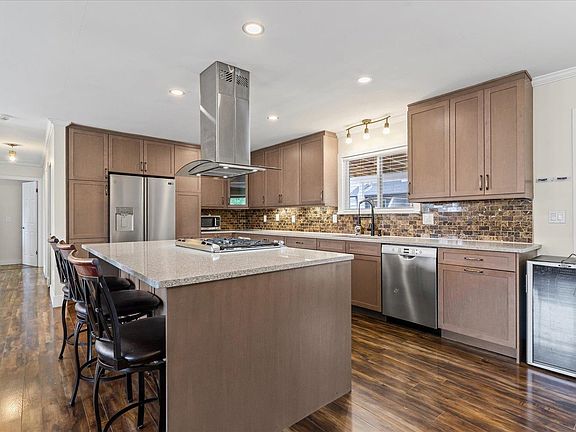 Bright open-concept floor planBeautifully updated kitchenModern finishesOversized islandLiving and dining areasCovered patioFully fenced backyard