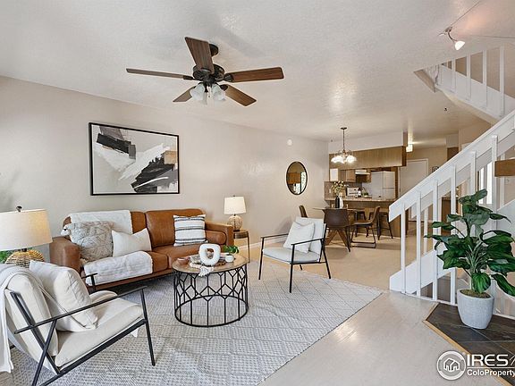This roomy townhome offers the comfort and layout of a single-family home. The large living room features a wood-burning fireplace and flows into the dining area and kitchen, with laminate wood floors throughout the main level.The kitchen includes granite tile countertops, a tile floor, cabinet doors in place, plus a dishwasher and range hood. Upstairs, the primary bedroom has a generous walk-in closet and a full bath with a skylight. A second large bedroom and another full bath round out the upper level with all new flooring throughout the upstairs. The basement includes a laundry room and offers plenty of potential for future expansion-whether you're envisioning a family room, office, or workout space. Step out back to a private patio that opens to a peaceful, tree-lined area. The unit also includes a one-car garage, central A/C, and is pet-friendly and has been completely repainted. With nearby trails just steps away, this home has great bones and a solid layout-ready for your personal touches.