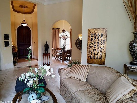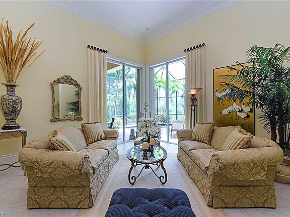 SPORTS MEMBERSHIP! PET FRIENDLY! ALSO AVAILABLE LONG TERM! REDUCED RENTAL RATE CONSIDERED FOR RENTALS 6 MONTHS OR LONGER! Rarely available, detached villa, situated on a prime waterfront lot in the luxurious Las Palmas community located in The Colony Golf & Country Club. This superbly furnished, 2-bedroom plus den, 3.5 bath custom home has many upgrades throughout. Features include a fully equipped kitchen with stainless steel appliances and gas range, granite counter tops, separate bar/wine area, breakfast nook, formal living and dining room, primary suite with a king size bed and flat screen TV, primary bath with garden tub, separate shower and dual sinks, guest bedroom with queen bed, TV, and its own private bathroom with tub/shower combo, den is fitted with a queen sleeper sofa with feather bed topper for extra comfort, desk, wireless internet, and its own private bathroom with walk in shower. Comfortably furnished family room with large flat screen TV is located just off the kitchen and opens to the fully screened outdoor living area with heated pool and spa, overlooking a gorgeous long lake view framed by a lush tropical landscape. Owner has a transferable Equity Sports Membership that gives tenant privileges to The Colony's tennis, fitness, spa, pool, dining and social activities, as well as golf privileges up to six times during season (November-April) and unlimited golf in the off season (May-October) at the Sports Member-Guest rate. Bay Club membership is available. The romantic three-story Bay Club overlooks the beauty of Estero Bay and offers a formal dining room, casual dining room, private dining, lounge and balcony seating with sweeping sunset vistas. Reserved exclusively for the dining enjoyment of The Colony residents and their guests. The Colony is a prestigious gated community located within Pelican Landing, a 2,365-acre gated community dedicated to preserving, protecting and enhancing the natural environment. Community amenities include a boat shuttle that provides transportation to and from a 34-acre gulf island Beach Park located at the northern tip of Big Hickory Island. Beach Park facilities include an elevated beach house with open decks, restrooms, shower facilities, nature library, beach bocce courts, open and screened picnic pavilions, beach chairs and umbrellas. The Community Center offers endless social activities and features a state-of-the-art 3,200 sq. ft. fitness center and 1,200 sq. ft. aerobics room. The Tennis Center has 12 har-tru courts (7 lighted) and a pro shop. Residents can enjoy private or group lessons or participate in one of the many scheduled events. Canoes and kayaks are available for residents use on Spring Creek, a tributary of Estero Bay, and Coconut Point Marina, which gives access to Estero Bay, Mound Key and the beaches.
