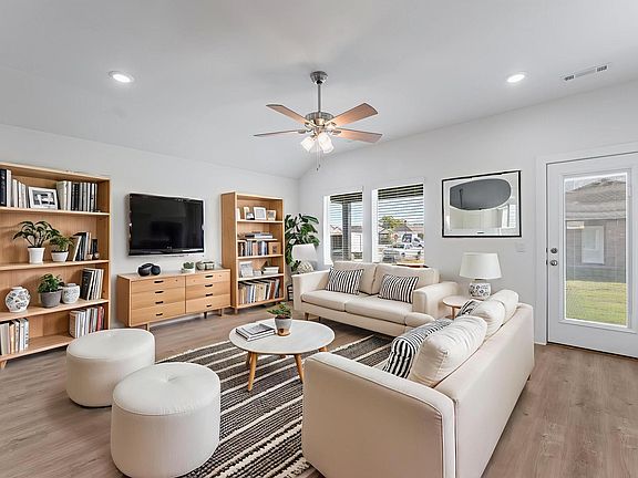 Brand-new and move-in ready! This stunning 4BR/3 full BA home in West Fayetteville features luxury vinyl plank flooring throughout, stainless steel appliances,a full-size refrigerator, washer, and dryer all included. Enjoy a spacious layout with ceiling fans, ample storage, and added garage shelving. Step outside to a covered back porch overlooking the fully fenced backyard (fence not pictured). Conveniently located near I-49, the University of Arkansas, and Fayetteville's scenic parks and trails, this new construction home offers modern comfort and an unbeatable location!