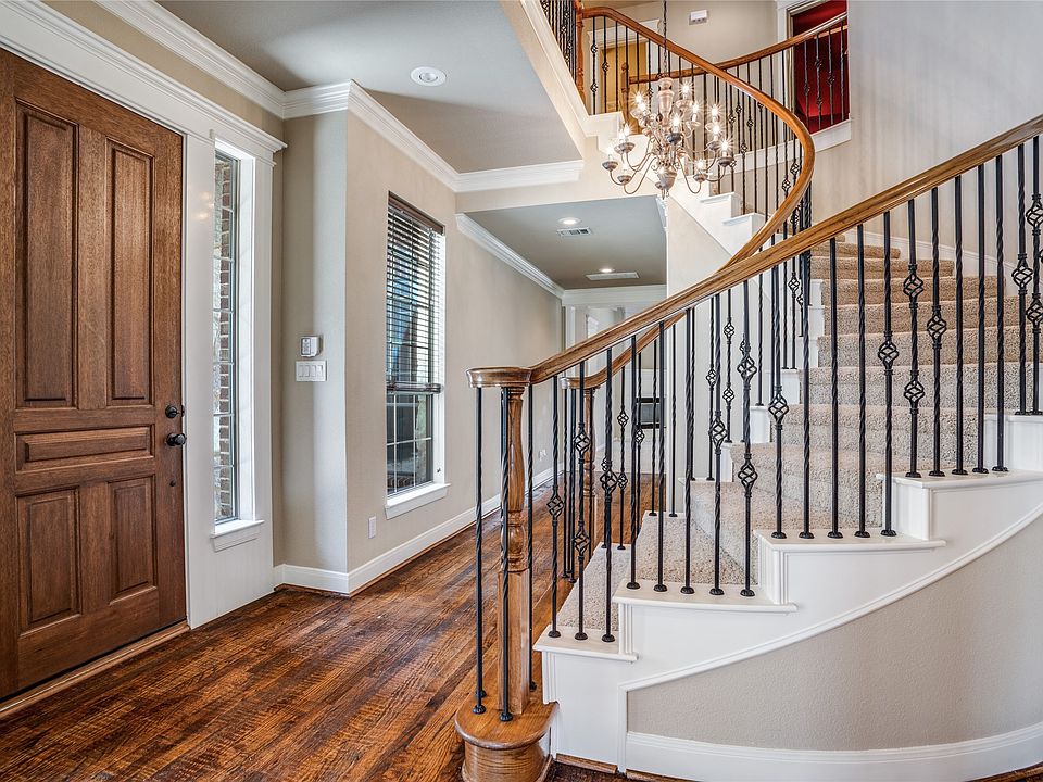 It's all about LOCATION! This home is nestled in the beautiful neighborhood of Crystal Creek. Whether you are a parent looking for schools ranked top 1% in the state, convenient access to shopping and walking trails, this home is a great place to raise your family! This home is within walking distance to Frisco ISD's top rated elementary school, a magnificent park system and sports complex; and easy access to HWY 121 and N. Dallas Tollway. This spacious floorplan features 4 bedrooms and 5 baths. Step inside the front door to hand scraped wood floors, high ceilings and open spaces. French doors on your right lead to a private office. A magnificent family room with a gas fire place opens up to a kitchen that is designed for creating masterpiece meals for family and guests. Three HVAC units installed in 2018, two 2 ton unit and one 4 ton unit. Newly installed dishwasher, microwave and oven. Step outside the back door where you can enjoy complete privacy in the heated salt water pool, spa hot tub with a newly installed wood privacy fence. The thoughtfully designed first floor features a spacious primary suite, complete with a luxurious soaking tub, a separate shower, and a walk-in closet, as well as a secondary bedroom—perfect for guests or multi-generational living with it's own separate entrance. The primary suite features a vaulted ceiling, and a spa-like bath with walk-in shower, dual vanities, and a walk-in closet. The home office and utility room maximize functionality. Upstairs, the possibilities expand with a spacious media room, two additional bedrooms, one with a full bath. The house also boasts a spacious 3-car garage. What you won’t find in new construction are quiet interior walls, solid core doors, mature landscape with irrigation. This beautiful quiet neighborhood has it all. Location, Recreation, Privacy, and Fabulous Schools...with a magnificent house to call your own!