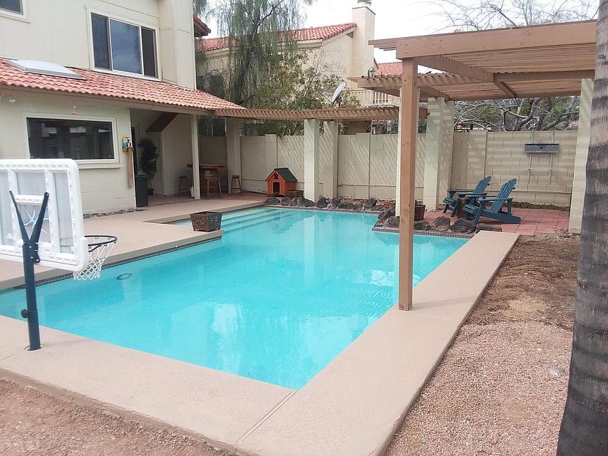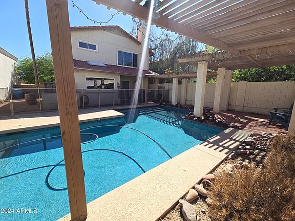 UPGRADED REMODLED HOME WITH POOL SURROUNDED BY SHADE VERANDAS. POOL SERVICE & FENCE INCLUDED. GATED ENTRANCE FOR SECURITY. LOW MAINTENANCE YARD .. BRIGHT KITCHEN WITH LARGE PICTURE WINDOW OVERLOOKING POOL. GRANITE COUNTERS, STAINLESS STEEL APPLIANCES. BREAKFAST NICHE WITH TABLE AND CUSHIONED BENCHES.INCLUDES FRIDGE/WASHER AND DRYER,WOOD BURNING FIREPLACE, CANNED LIGHTS AND CERAMIC WOOD TONE FLOORING. NEWER CARPET. MASTER SUITE WITH VAULTED CEILING, DOUBLE SINKS AND TILED SHOWER. CEILING FANS THROUGHOUT. EASY ACCESS TO SOUTH MOUNTAIN PARK. 12 months