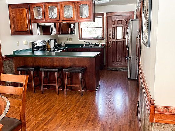Newer construction with beautiful woodwork and large windows throughout the house. It features two bedrooms on main floor and two on lower level. Large living room with patio doors to wrap around deck on the main level plus a large rec room on the lower level. Walk out lower level with recently remodeled large master suite. The French doors lead to a patio area with a hot tub. In-floor heat on lower level so you'll never feel a chill on your feet. Home also provides central air, natural gas, cable/internet, well and septic. A short walk or drive to your legal access on the Menominee River to boat, fish, or picnic at the waters edge! Dock and golf cart negotiable with sale. Store your boats and extra toys in the vaulted ceiling 3 car garage! This beautiful house has a lot of new features including a new deck, remodeled master bedroom & bathroom, high efficiency boiler (for hot water and in floor heat), and gutters. This is a perfect home to grow in and entertain. You must see the features to really appreciate the craftsmanship and amenities this home has to offer!