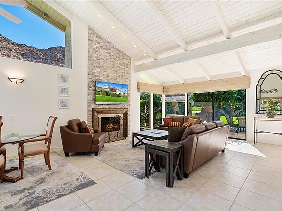 Welcome to Mountain Cove in Indian Wells, an inviting retreat framed by dramatic mountain views. This rare three-bedroom, three-bath residence sits on FEE land, offering true ownership and a layout designed for comfort and ease.A gated entry leads to an expansive covered patio with skylights, creating a generous outdoor living area with direct access to the two-car garage, kitchen, the primary suite, and the main living spaces. Beyond the double doors, the home opens to soaring vaulted ceilings and a bright living room framed by picture windows that showcase the surrounding peaks.Each bedroom offers the privacy of an ensuite bathroom and its own sliding doors to the outdoors, giving the home a relaxed, resort-style flow. A new roof was completed in July 2025.Residents enjoy three community pools, guard-gated security, and beautifully maintained grounds. IID service provides lower electric costs, and homeowners also benefit from access to the Hyatt Regency Indian Wells fitness center. Additional privileges include preferred discounts at the Indian Wells Tennis Garden, the Indian Wells Golf Resort, and select nearby spas, dining, and shops.