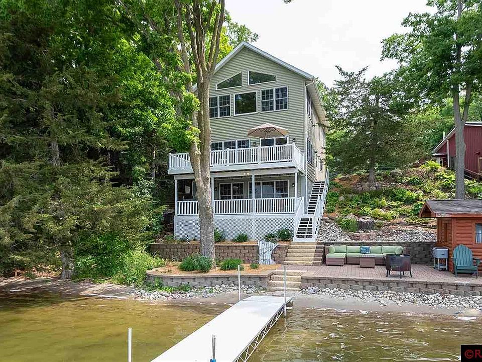 Spectacular Vista! The lake home you've been waiting for: previously a 1964 home, completely renovated in 2005, adding square footage & garage (all new construction: mechanicals, electrical, appliances, roof, windows & doors, etc.). The main level offers 9' ceilings, large kitchen with loads of cabinetry & counter space, pantry, undercabinet lighting, an open plan to dining & living area, patio door to decking. Imagine your evening meals here! There's also an office/bedroom, 3/4 bath & laundry closet on this level. The upper level boasts a family room with trapezoid windows and vaulted ceiling. Enjoy stunning lake views from here, play darts & have a drink at the bar. You'll find the primary bedroom on this level, large walk-in closet, spa tub, separate shower & double sinks. The basement provides rec room with walkout feature to deck, bedroom and den. HEOS Blue-tooth sound system throughout the home with exterior speakers. Extensive landscaping on lakeside with tiered retaining walls, pervious patio with nice seating area overlooking the beach, storage shed, plus a garden shed. Claim your spot on West Jefferson!