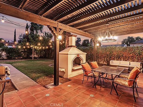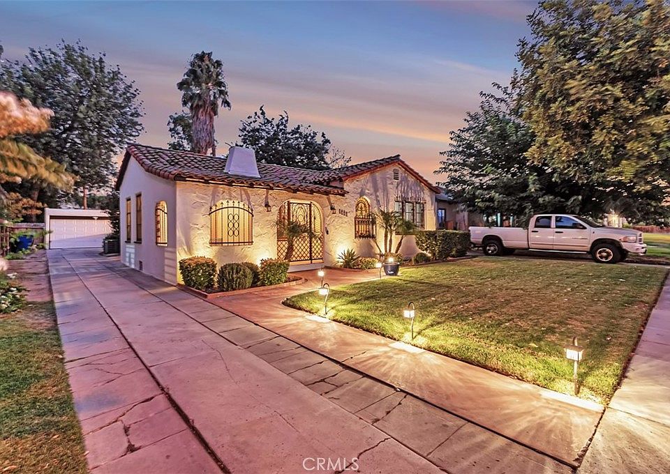 Very sought after neighborhood in the Historic Palm Heights District. This Spanish style home with lots of character built in 1929. 3 large bedrooms, 1.5 bathrooms, remodeled kitchen with granite counters and built-in microwave, central air/heat, dark hardwood floors throughout, beamed ceiling in living room, fireplace, formal dining room and breakfast nook, built-ins, French doors, tile roof, private landscaped backyard with auto sprinklers, shed, and fruit trees. Enjoy California Summer nights in the covered patio and outside fireplace. 2 Car detached garage. Great neighborhood, lovely location, walking distance to restaurants and the Riverside Plaza, and a short drive to all the fun in downtown Riverside.
