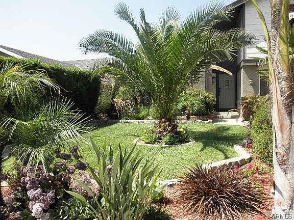 STANDARD SALE. With many upgrades done throughout, from Artistically painted walls inside to Creative landscaping including rare plants outside. Vaulted ceilings in the living room, separate dining room (being used as an office) and recessed family room with wet bar. Kitchen has been completely remodeled from counter tops to cabinets. Breakfast nook with pool view. The "popcorn ceilings" have all been removed. Whole house fan installed. Ceiling fans found in most rooms including the kitchen. Energy efficient dual paned windows found throughout most of the home. Many built-ins in both the home and the garage. Ample storage found throughout including a large walk-in closet in Master Bedroom Suite. Laminated flooring throughout the downstairs. Wood burning fireplace in the family room. Outside you will find Seamless Aluminium rain gutters installed, inground pool/spa with New Energy Savings pool pump. Block walls surround the property. Outdoor fireplace. Private Gazebo with ceiling fan, in corner of yard. Full patio cover over rear of home. Tropical theme landscaping including palm trees and other exotic plants. Window awnings in the front of home. Front yard landscaping follows the Tropical design. Truly an TURNKEY home, just waiting for a n