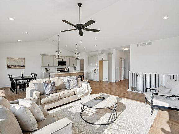 The Lincolnshire Plan by KRM Custom Homes blends comfort, style, and functionality for today’s lifestyle, all in a prime location! This 4-bed, 3-bath home is designed to make everyday living easier and more enjoyable. Step inside to an open main floor with vaulted ceilings, oversized windows, and a cozy electric fireplace. The chef’s kitchen impresses with quartz countertops, stainless steel appliances, soft-close cabinets with crown molding, a large island for hosting, and a huge walk-in pantry for effortless organization. The primary suite feels like a retreat with double vanities, a sleek walk-in shower, and an oversized closet that connects directly to the laundry room and drop zone—ultimate convenience! The main floor also includes a private guest bedroom and full bath. Head downstairs to a finished lower level with two more bedrooms, a ¾ bath, and a spacious family room—perfect for game days or movie nights. Enjoy outdoor living on the 12x12 covered deck, and appreciate quality details throughout, from vaulted ceilings to KRM’s signature craftsmanship. Built with superior craftsmanship and top-tier materials, including Hardi siding, passive radon mitigation, the BIBS insulation system, Form-A-Drain foundation system, Advantek subflooring, and the Zip system exterior for enhanced durability and energy efficiency. Don’t miss your chance to fall in love and call this home YOURS!