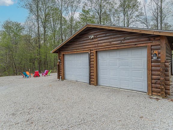 Welcome home to paradise. This Log cabin has an open floor plan with lots of light drenching through & views of the woods. This gorgeous home is updated with newer roof, furnace, hot water heater, updated kitchen, updated bathrooms, flooring, and paint. The walk out basement holds the third bdrm with bath, & 2 bonus rms that could potentially flex as bdrm, playroom, office, or home school room if needed. The w/O Bsmt also has a family/rec room as well along with storage space. The massive driveway has plenty of room for your RV, boat, & plenty of parking in addition. The firepit & colorful chairs stay too. The detached garage is wired for 220 & has lots of shop lights & room for the workshop items, plus 2 cars. The above ground pool stays.